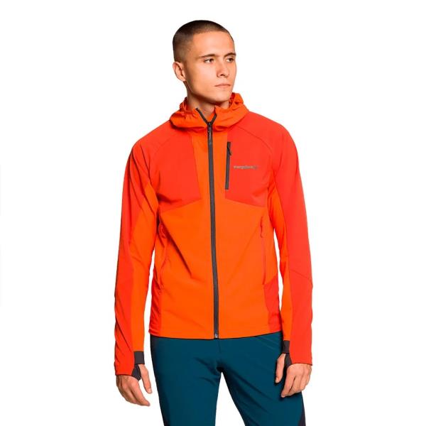 Giacca da alpinismo realizzata in nylon riciclato elasticizzato, caratterizzata dalla sua robustezza. Ha un cappuccio fisso e un contorno viso con elastico. Le maniche sono raglan e presentano rinforzi su spalle, gomiti e vita. La giacca è dotata di una cerniera longitudinale e di un cordino elastico nella parte inferiore, con chiusura a barilotto. I polsini sono dotati di regolazione elastica del pollice e la parte posteriore è più lunga per una maggiore protezione. Ha una tasca sul petto con cerniera e tasche ventrali con cerniera. Inoltre, è trattato idrorepellente senza PFC, traspirante, leggero e confortevole. Il tessuto bielastico garantisce comfort e libertà di movimento, con una vestibilità ergonomica e protezione UV +50.
