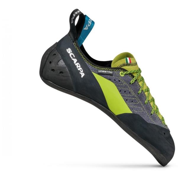 SCARPA Maestro Eco è una scarpetta da arrampicata studiata per l'arrampicata su vie a più tiri, sia sportive che trad.